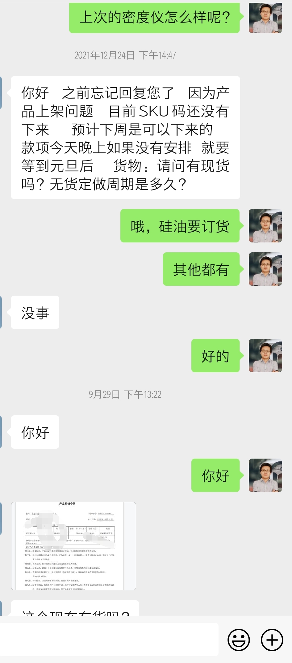 固體密度測(cè)量?jī)xET-320系列產(chǎn)品,合同做過去快一年了,才來訂貨