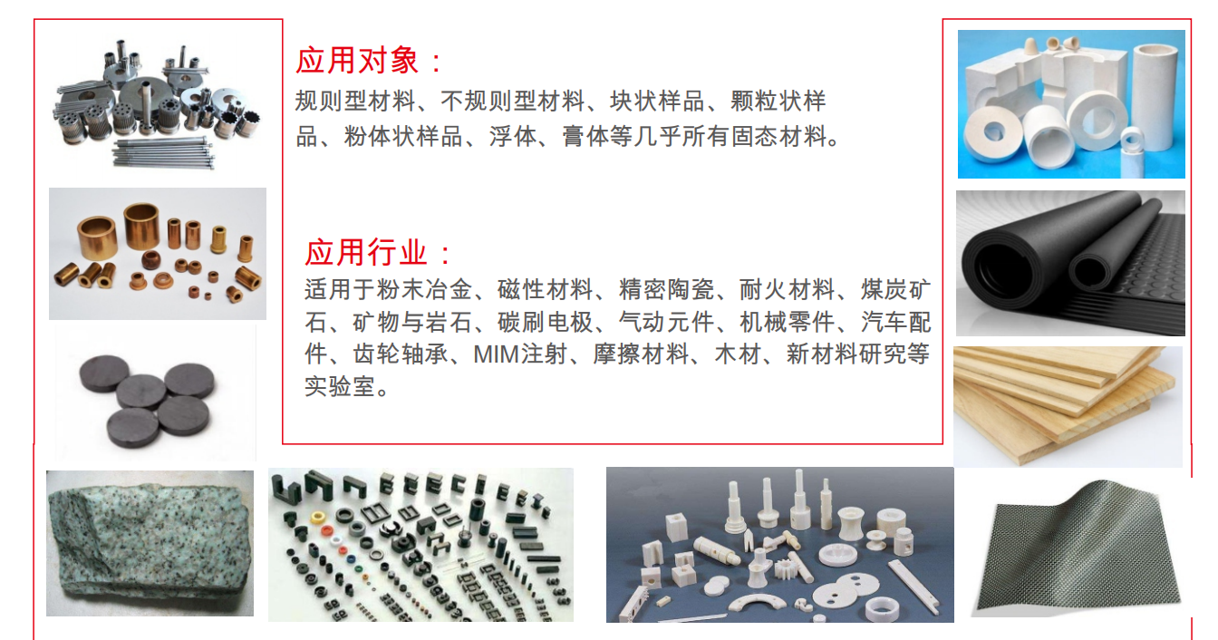 無論您是來自粉末冶金、陶瓷、建材還是科研院所,只要您的產(chǎn)品和多孔、吸水有關,需要測量密度、孔隙率、含油率等一系列參數(shù),都可以使用儀特諾ET-320M、ET-120HM、ET-120S系列多功能密度儀,它讓復雜的檢測變得像“稱重”一樣簡單,幫您把寶貴的時間和精力,投入到更重要的研發(fā)和生產(chǎn)中去。